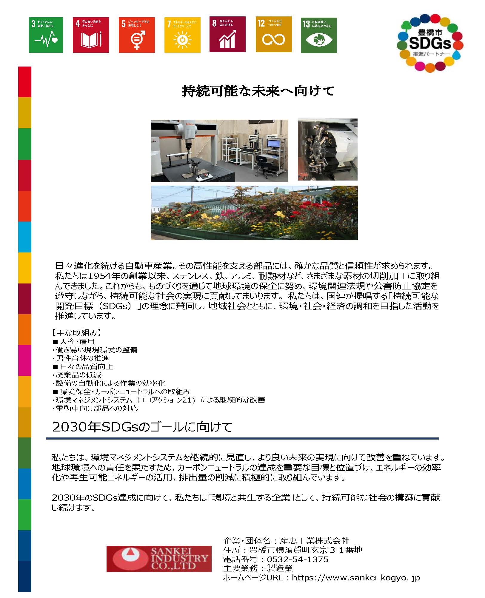 豊橋市と連携し、SDGs推進パートナー企業として、持続可能なまちの実現に向けた活動を積極的に進めてまいります。
